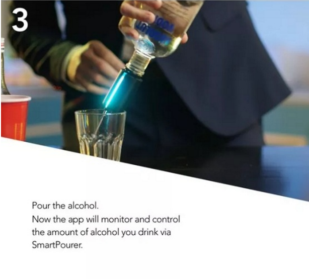 Setelah menggunakan penutup ini, setiap kali Anda menuangkan anggur, penutup tersebut akan terdeteksi oleh SmartPourer dan data yang relevan akan secara otomatis disinkronkan ke aplikasi melalui Bluetooth. SmartPourer menyimpan data konsumsi alkohol Anda dan menampilkannya di ponsel Anda dalam bentuk peta keamanan. Aplikasi ini akan memperingatkan Anda ketika Anda kemungkinan akan mabuk.