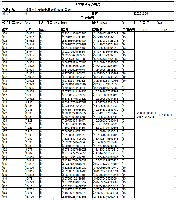 | JT-K8025 | 80*25*1,26 mm | Impinj Monza R6-P | Pengguna 32-bit, TID 48-bit, EPC 128-bit | |